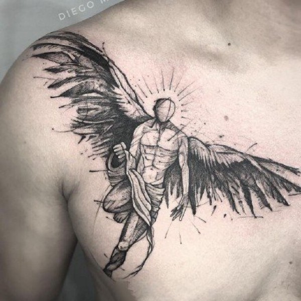 霸气翅膀:适合男性的一组霸气翅膀纹身图案9张