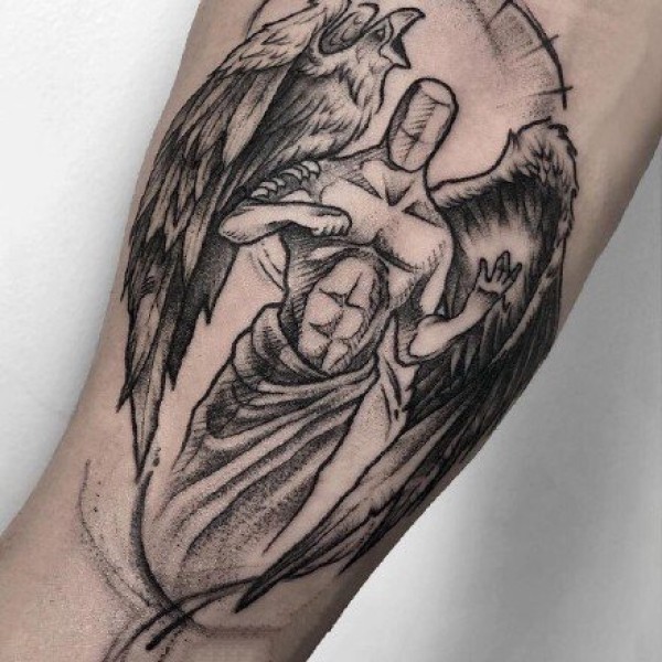 霸气翅膀:适合男性的一组霸气翅膀纹身图案9张