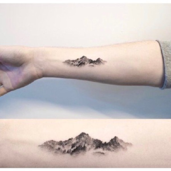 小臂彩色风景山脉几何纹身图案