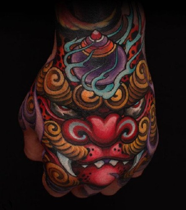 手背传统纹身 9张大胆浓郁的传统唐狮等手背纹身图案