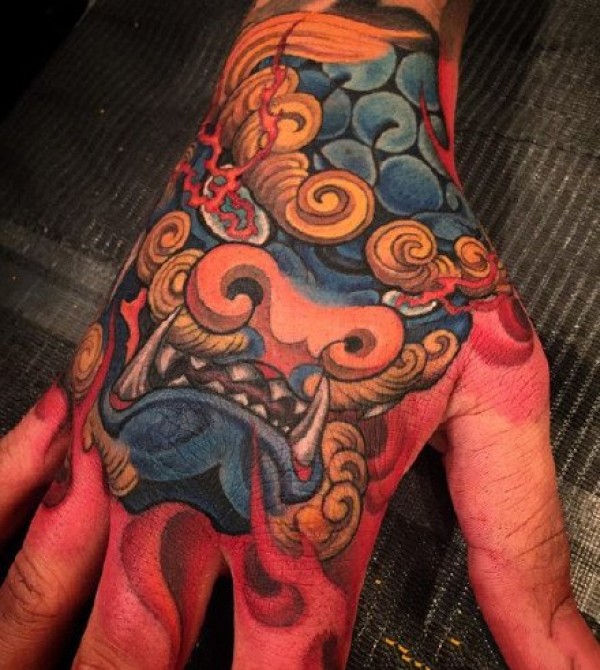 手背传统纹身 9张大胆浓郁的传统唐狮等手背纹身图案