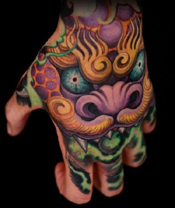 手背传统纹身 9张大胆浓郁的传统唐狮等手背纹身图案