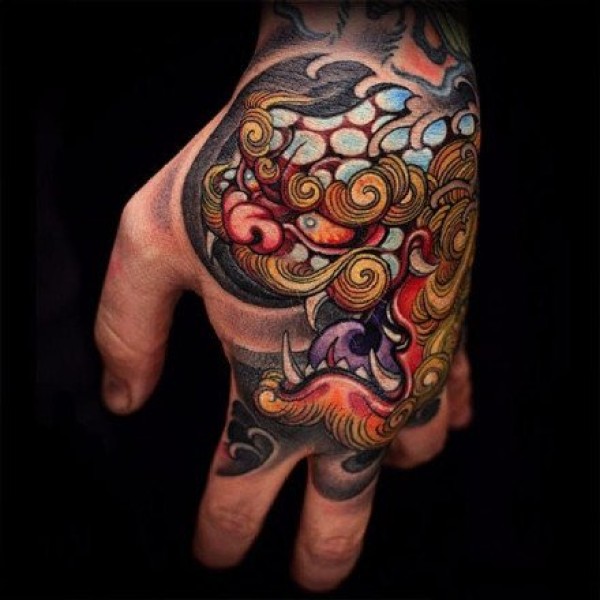 手背传统纹身 9张大胆浓郁的传统唐狮等手背纹身图案