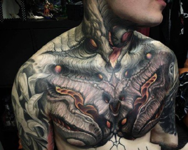 欧美黑灰色3d立体写实包大臂纹身作品9张