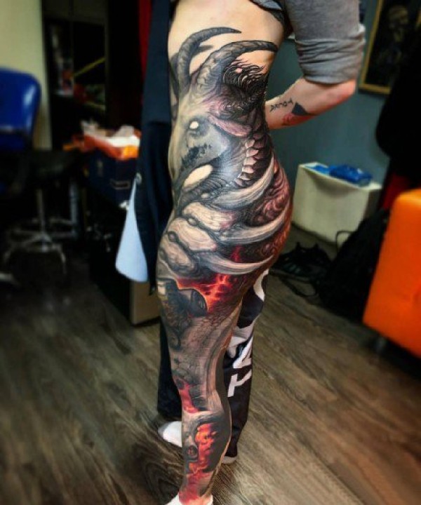 欧美黑灰色3d立体写实包大臂纹身作品9张