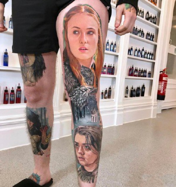 清纯女孩腿上可爱肖像纹身图片_肖像纹身图案大全_纹身图吧