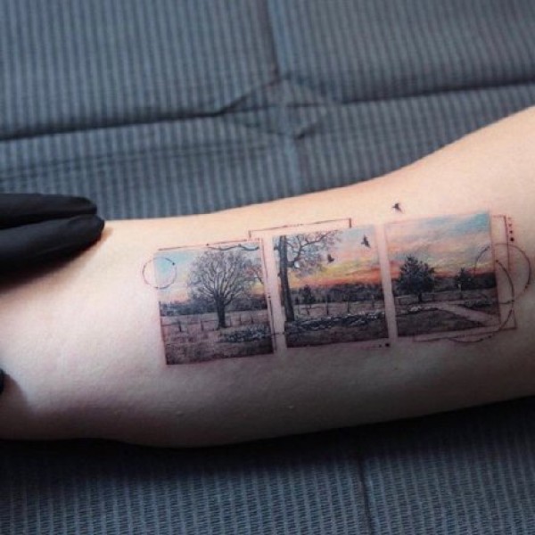 彩色风景纹身--一组几何图形+彩色的小风景纹身图案欣赏