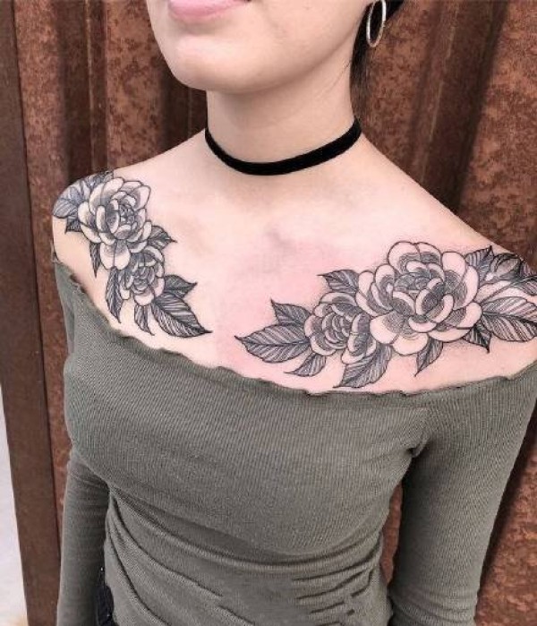 性感肩花纹身 适合女生的锁骨肩部花朵纹身图片