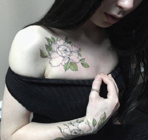 大臂素花纹身 9款女士的大臂黑灰花朵植物纹身图案