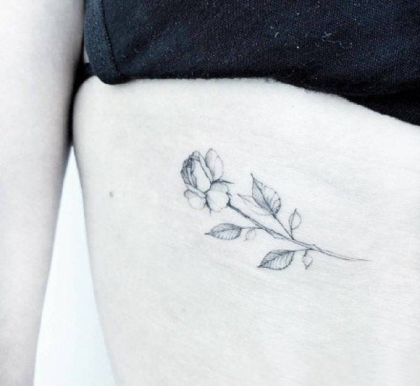 大腿素花纹身 女士大腿处性感的素花纹身图片