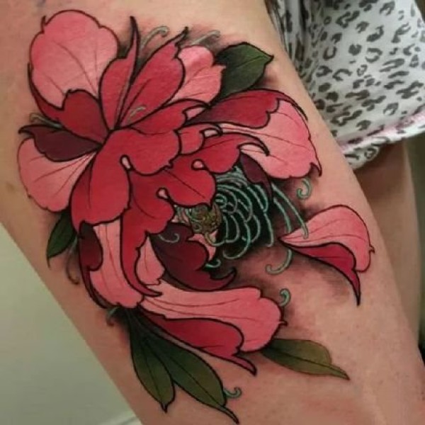 传统牡丹纹身 9张传统风格的漂亮牡丹纹身图案