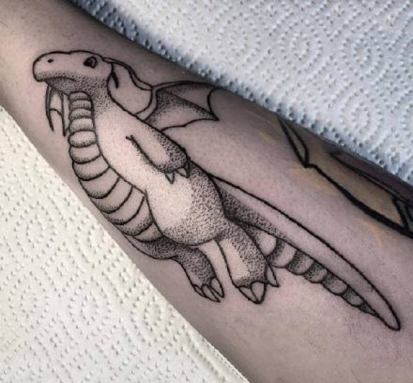 龙纹身手稿_一组老传统黑灰龙手稿纹身图案