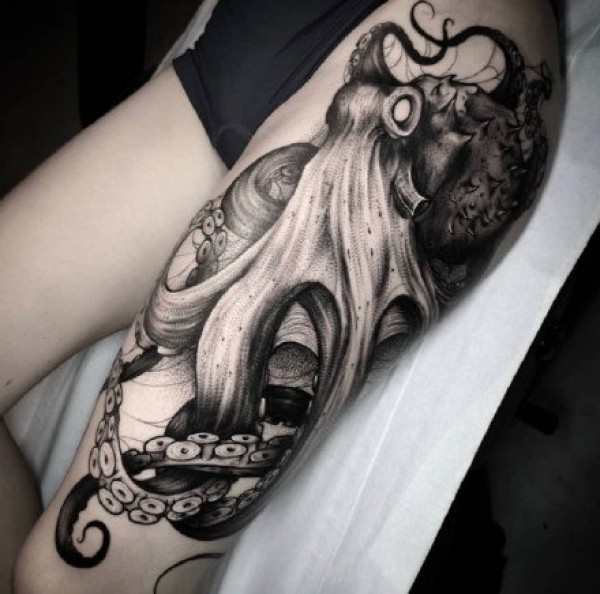 花腿纹身--一组大黑腿纹身图案作品欣赏