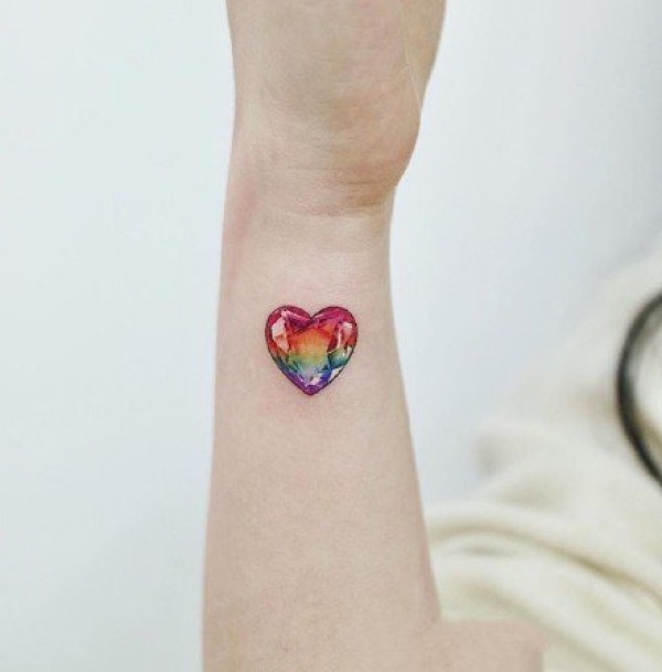 皇冠钻石小纹身:钻石和皇冠搭配的小彩色纹身图案
