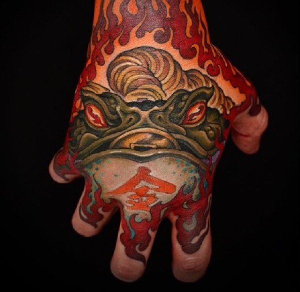 手背传统纹身 9张大胆浓郁的传统唐狮等手背纹身图案