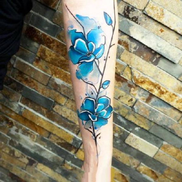 蓝色水墨纹身 漂亮的9款蓝色水彩泼墨纹身图案