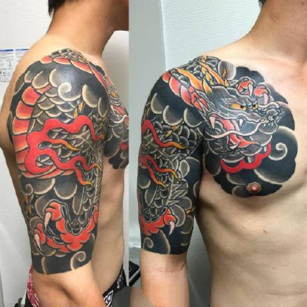 日式手彫刺青作品—半甲龙很感谢客户认可手彫刺青,手彫是日本纹身的手工雕刻技术,时间可以追溯到日本17世纪的江户时代。19世纪,手彫技术被日本黑帮挪用,被用作入会仪式,象征着从此就是江湖中人。在日式传统