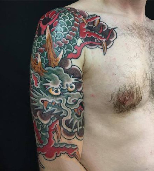 霸气过肩龙半甲纹身