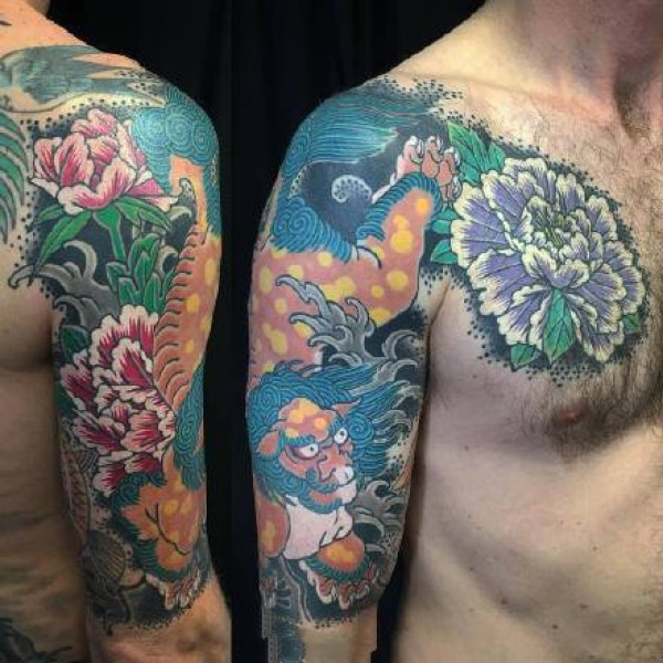 半甲纹身图片半甲观音神兽唐狮纹身图片纹身_半甲纹身图案大全_纹身图吧