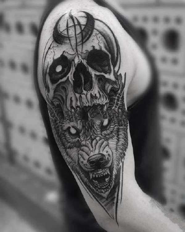 暗黑骷髅头纹身 9张包臂的暗黑色骷髅纹身图片