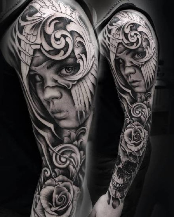 暗黑骷髅头纹身 9张包臂的暗黑色骷髅纹身图片
