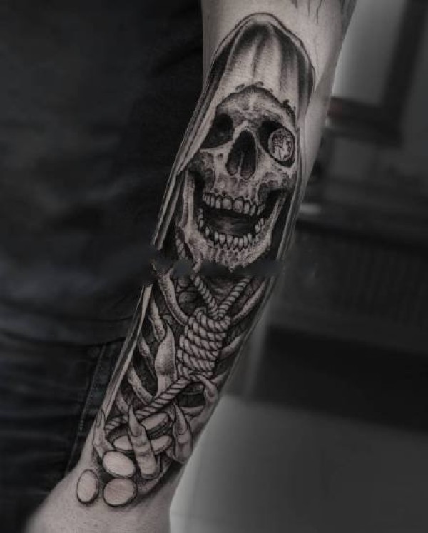 暗黑骷髅头纹身 9张包臂的暗黑色骷髅纹身图片