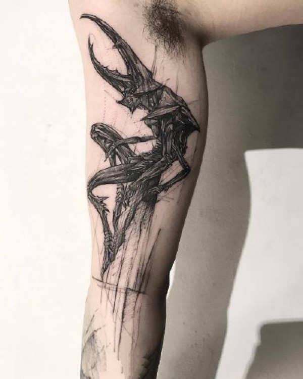 点线纹身 设计感极强的写实与抽象结合的纹身图片