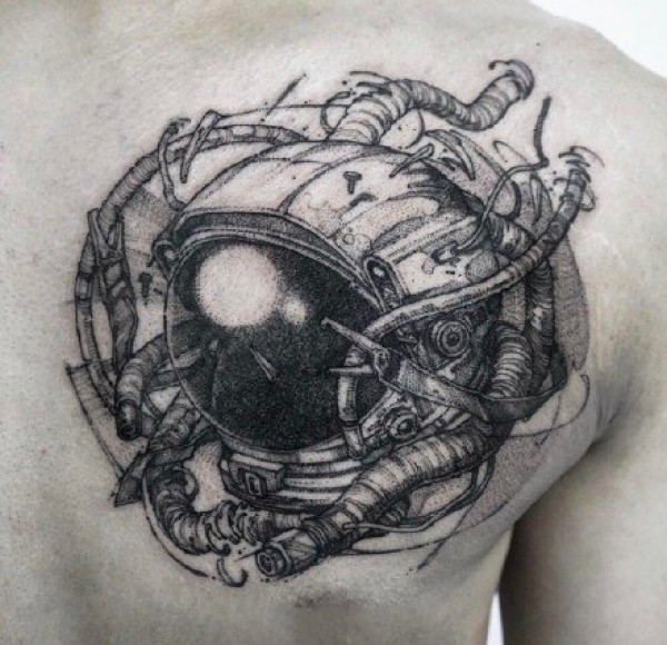 新传统风格的9张男性黑灰大满背纹身图案图片