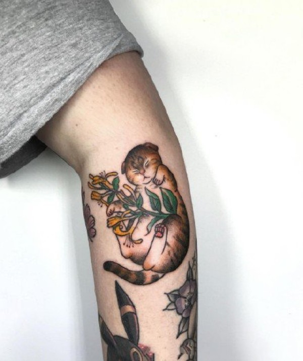 潮流纹身-色彩可爱的小猫小狗手臂纹身图片