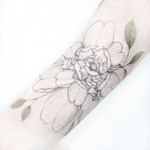 小臂上小清新的黑灰素花纹身图片