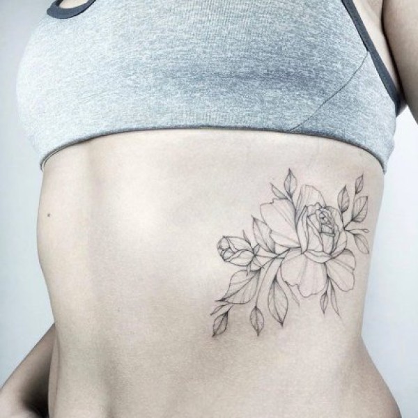女生素花纹身 适合女孩子的小清新花朵线条纹身图案