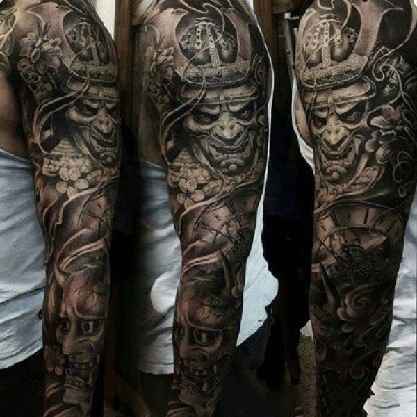欧美花臂纹身_22张霸气黑灰欧美大黑花臂纹身图案作品图片