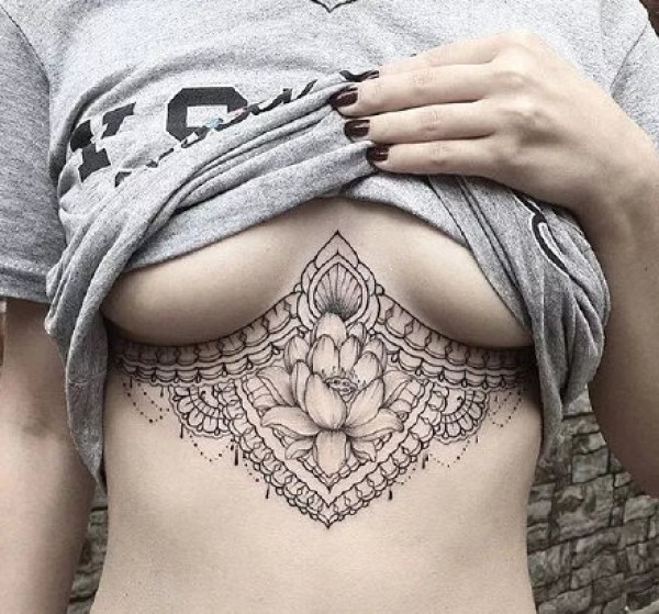 性感胸部纹身 9款女生别致优雅的胸下梵花纹身图案