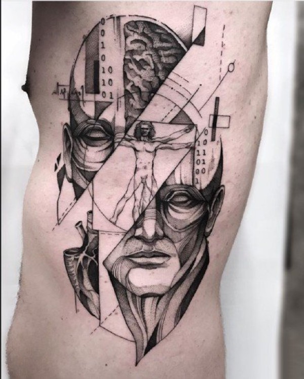 点线纹身 设计感极强的写实与抽象结合的纹身图片