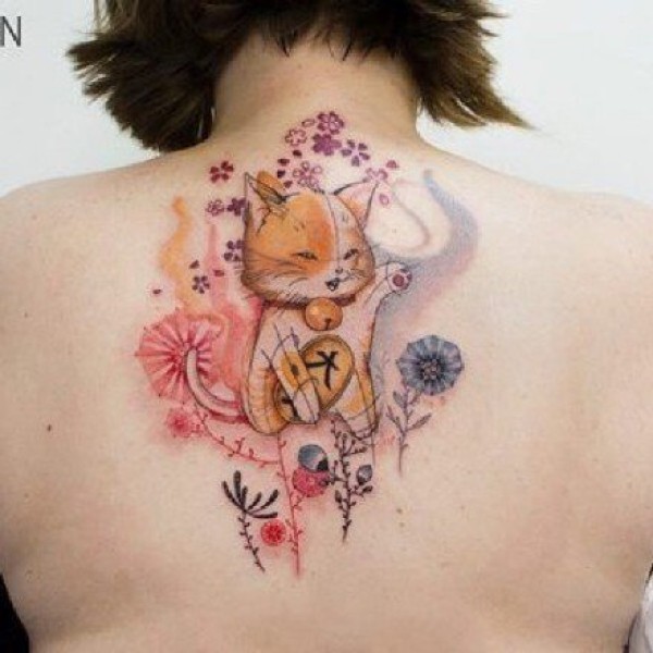 纹身招财猫图案 9款可爱的招财猫主题纹身图案