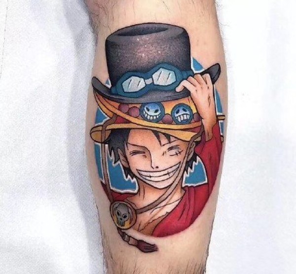 腿部点刺日本漫画海贼王全体成全纹身图案