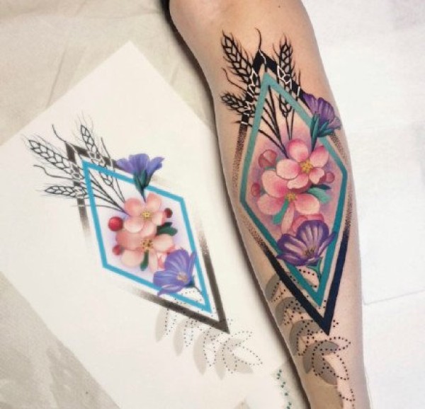 花卉纹身 9款唯美的小清新水彩花朵纹身图片