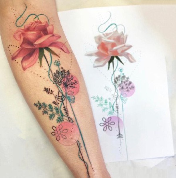 花卉纹身 9款唯美的小清新水彩花朵纹身图片