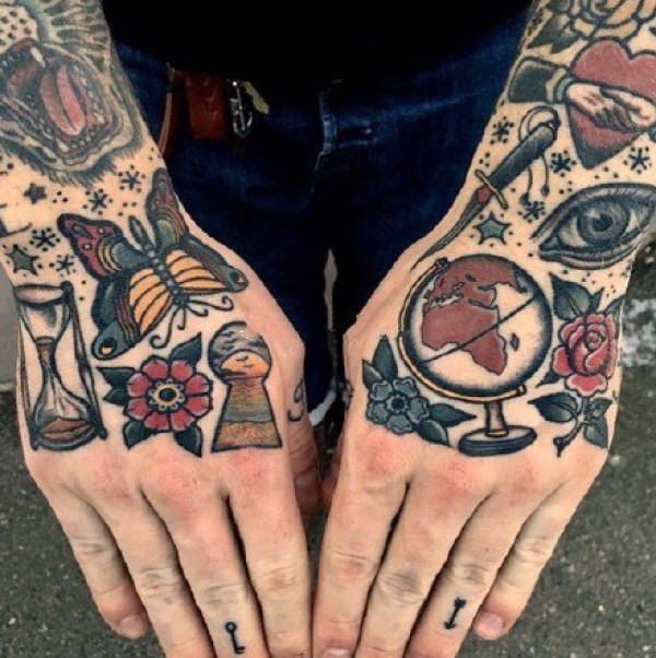 手背oldschool图案_15张手背上的oldschool纹身图案作品