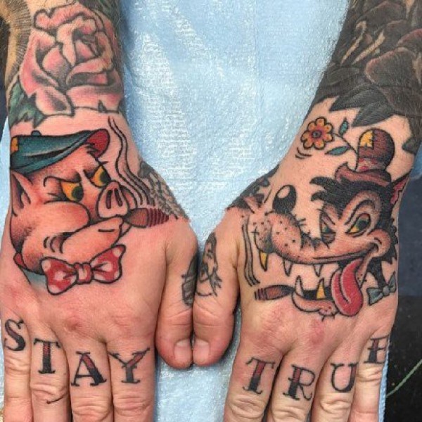 手背部的9组oldschool风格纹身图片