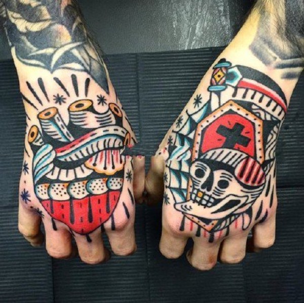 手背oldschool图案_15张手背上的oldschool纹身图案作品