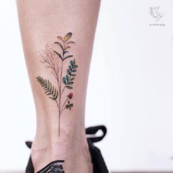 小清新植物纹身 简约小情的一组小彩色纹身图片