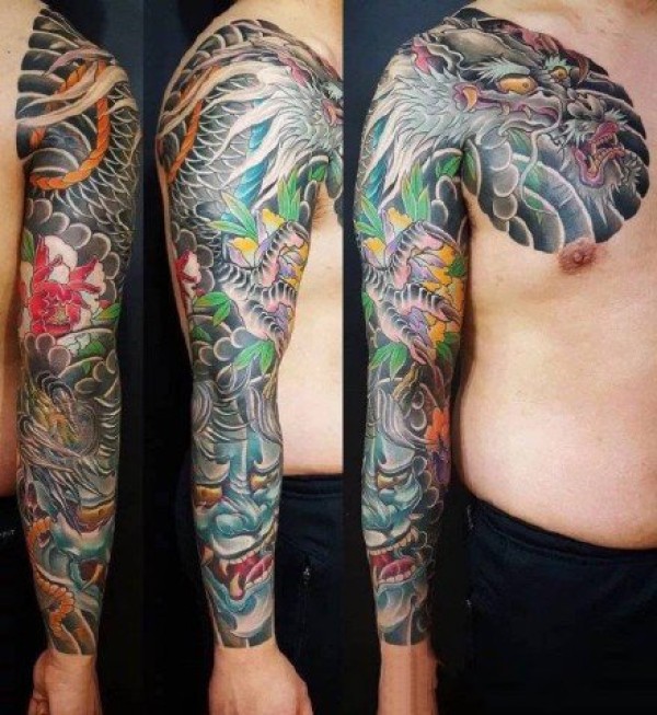 传统花臂纹身 9张传统风格的花臂纹身作品欣赏