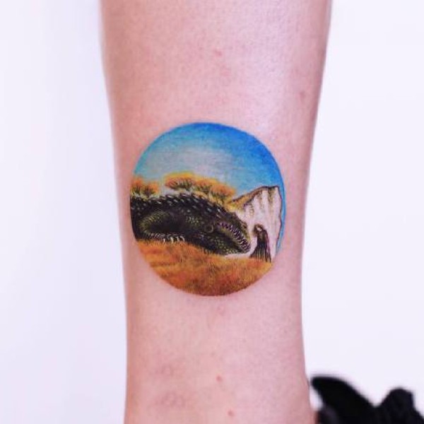 圆形风景纹身--几张几何圆形+风景纹身图案作品