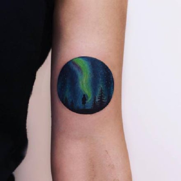 圆形风景纹身--几张几何圆形+风景纹身图案作品