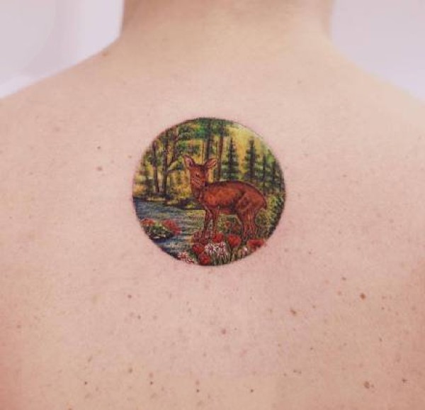 圆形风景纹身--几张几何圆形+风景纹身图案作品