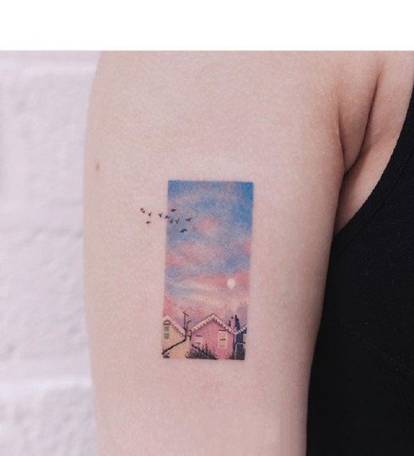 彩色风景纹身--一组几何图形+彩色的小风景纹身图案欣赏