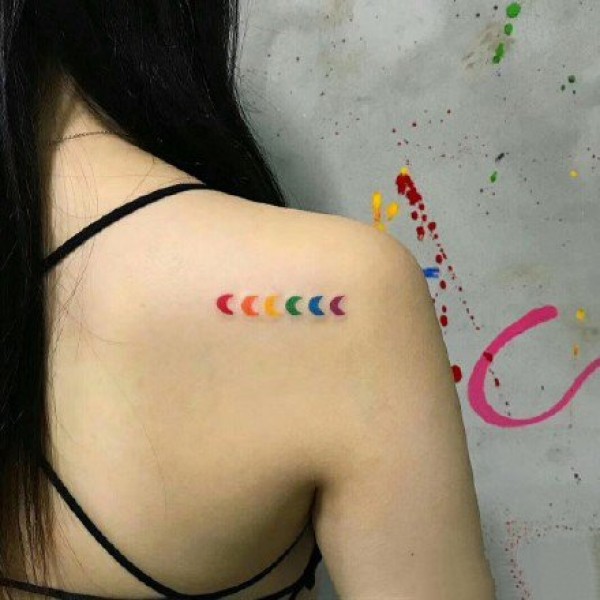 极简渐变色的彩虹条小清新纹身图片