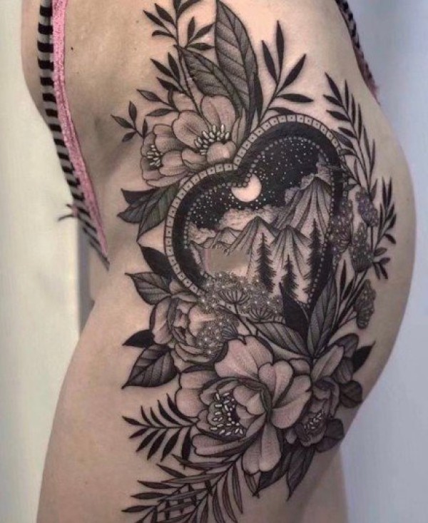 性感大腿纹身 女士大腿处性感的花花纹身图片