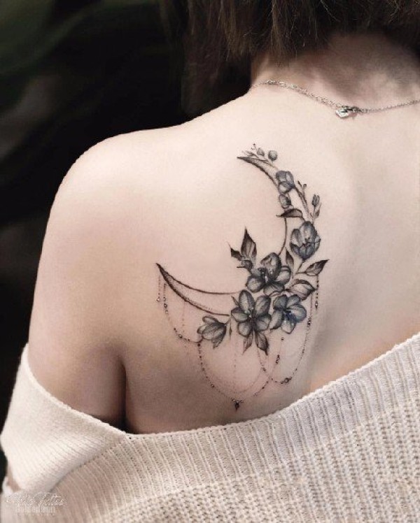 女性小纹身 适合女生的超简约水墨花纹身图案